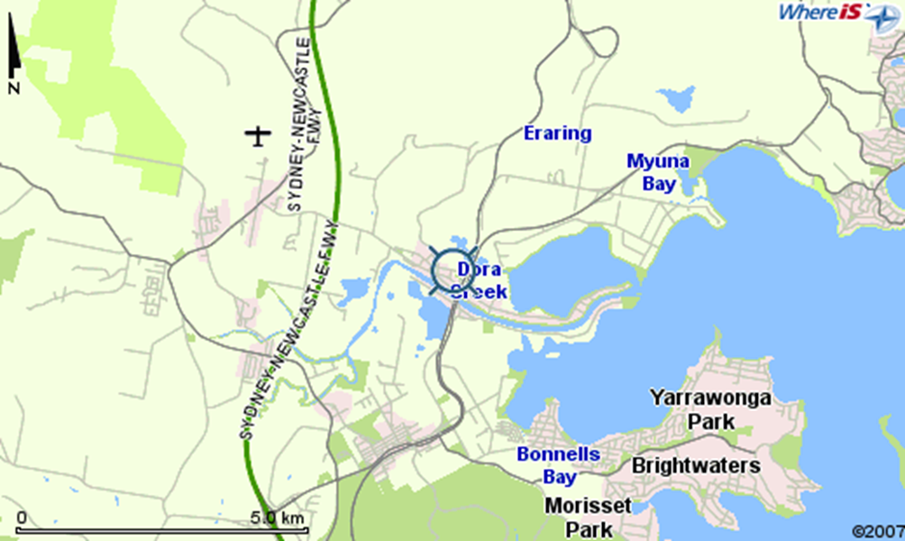 Dora Creek is a small rural suburb of the City of Lake Macquarie in New South Wales, Australia, located west of Lake Macquarie in New South Wales and north of the town of Morisset.